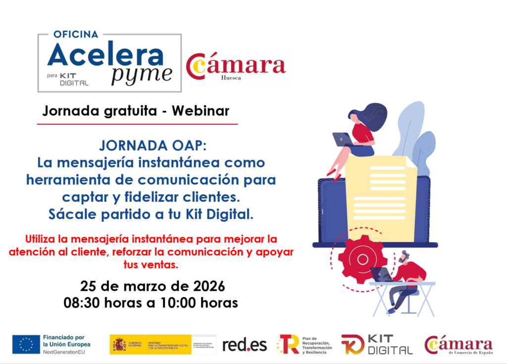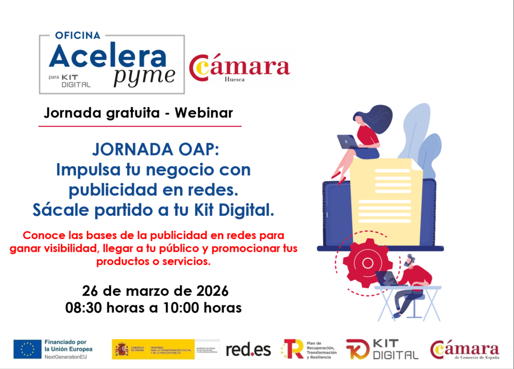 La Cámara Oficial de Comercio, Industria y Servicios de la Provincia de Huesca, en colaboración con Red.es y la Cámara de España, hemos puesto en marcha el Programa Oficinas Acelera Pyme, con el objetivo de impulsar la transformación digital de las pequeñas y medianas empresas, autónomos y emprendedores de nuestra provincia.